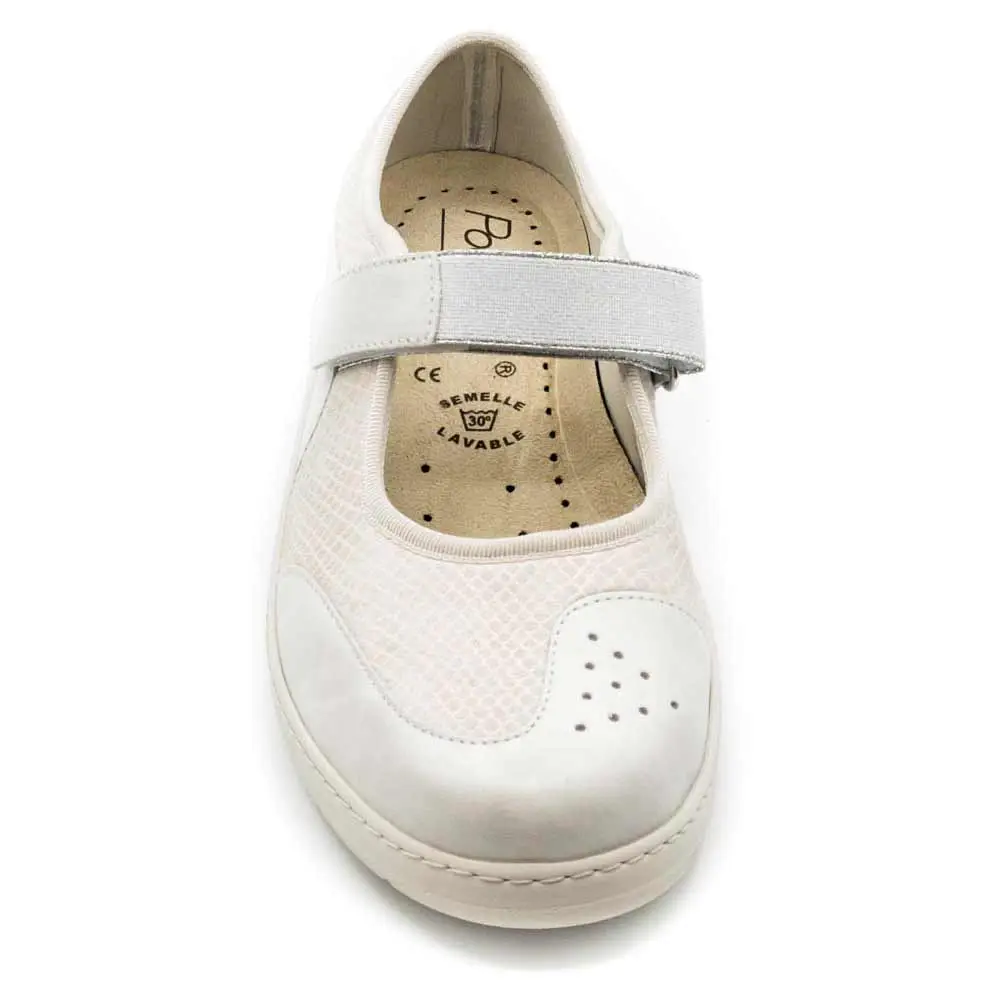 Cette chaussure confort pour femme est disponible en couleur écru et de la pointure 35 à 42.