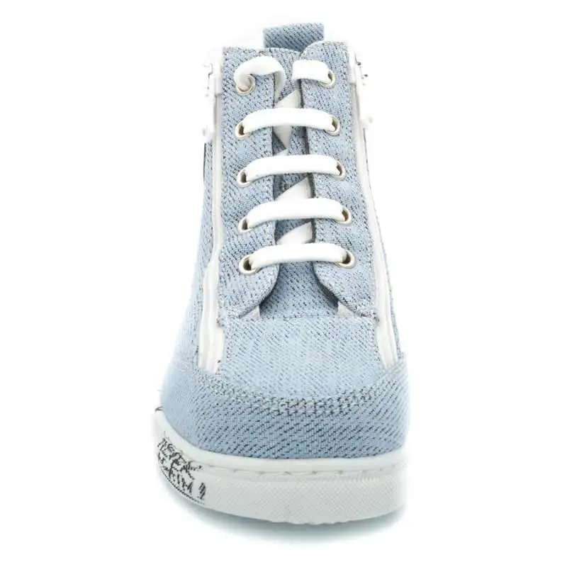 Cette chaussure orthopédique pour enfant est disponible en couleur bleu ciel et de la pointure 26 à 40.