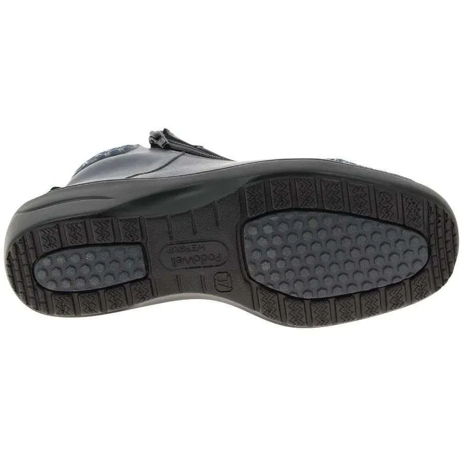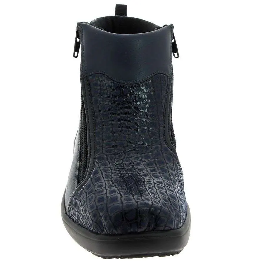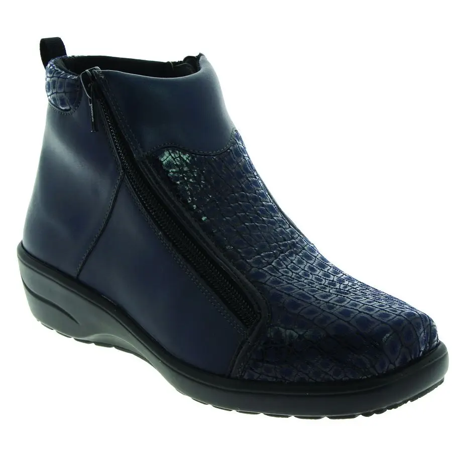 Cette bottine avec une largeur consĂ©quente Ă l’avant-pied permettant de soulager les personnes avec des pieds plus larges que la normale.