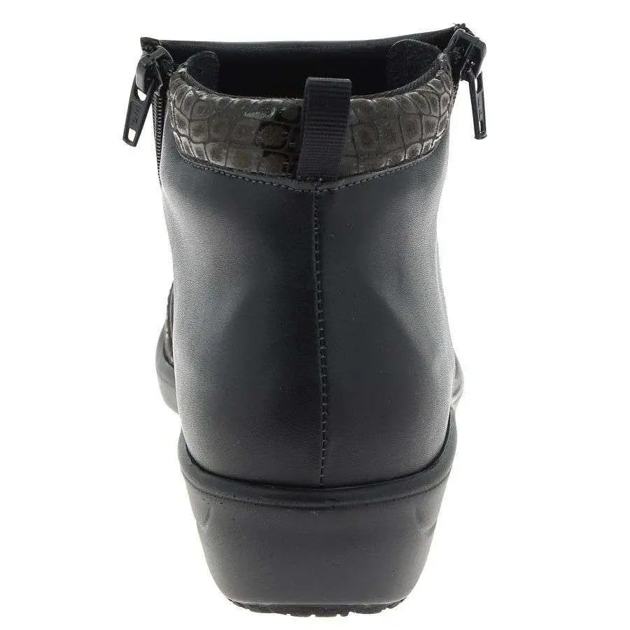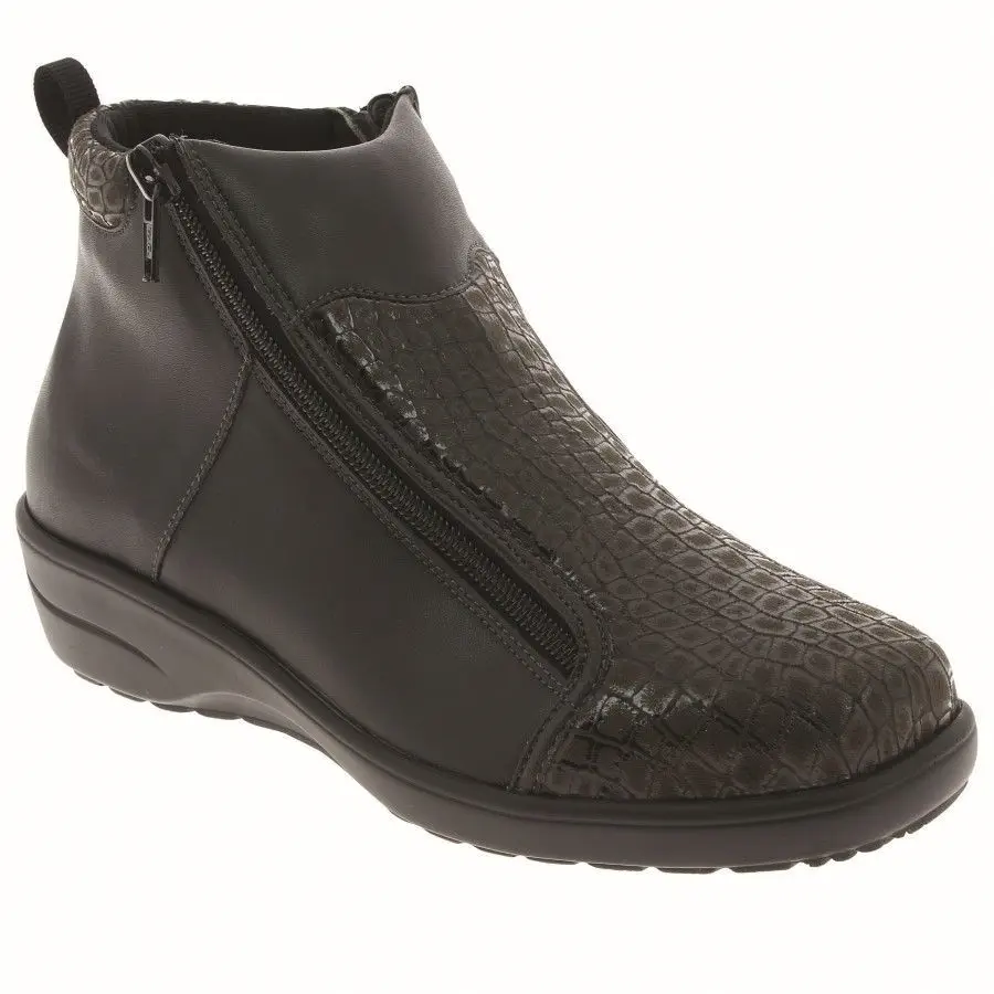Cette bottine avec une largeur conséquente à l’avant-pied permettant de soulager les personnes avec des pieds plus larges que la normale.