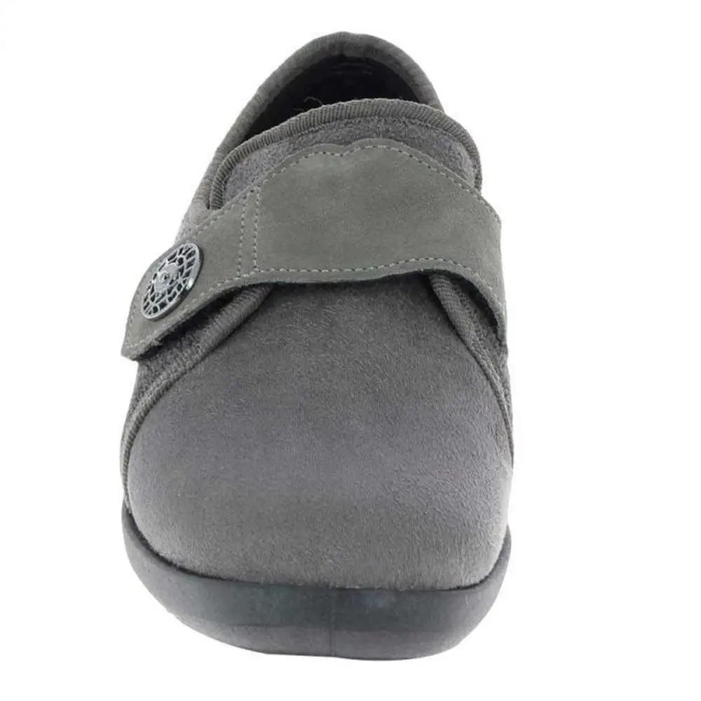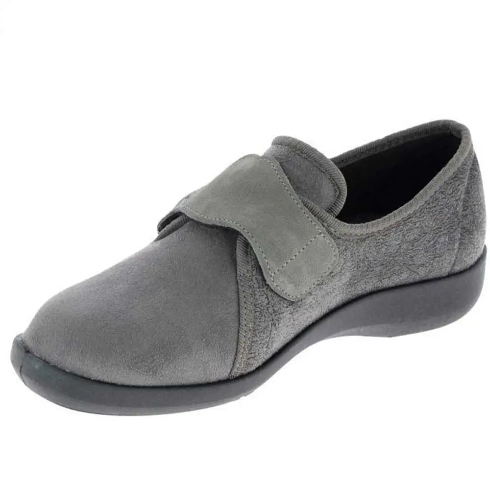Ce chausson confortable pour femme est disponible en couleur taupe et de la pointure 36 à 42.