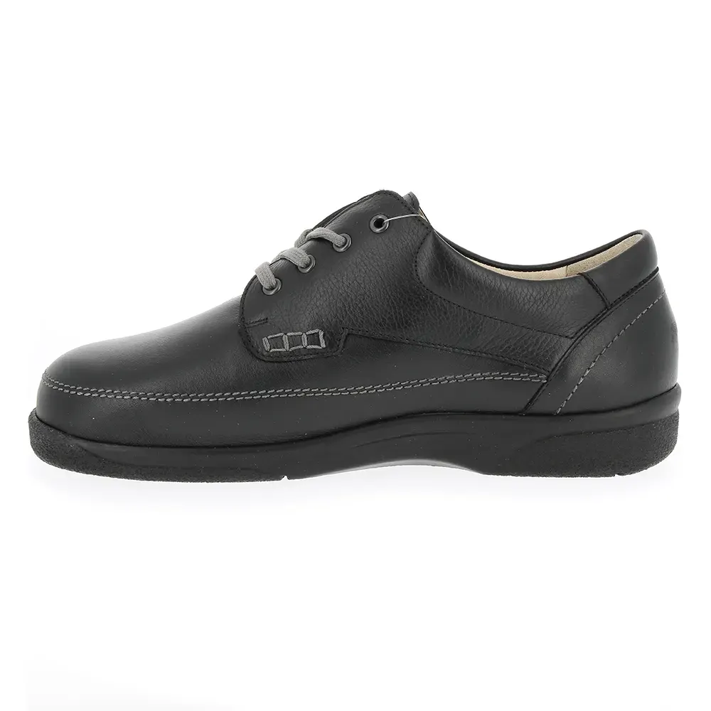 Cette chaussure pied large pour homme est disponible en couleur noir et de la pointure 39 à 50.