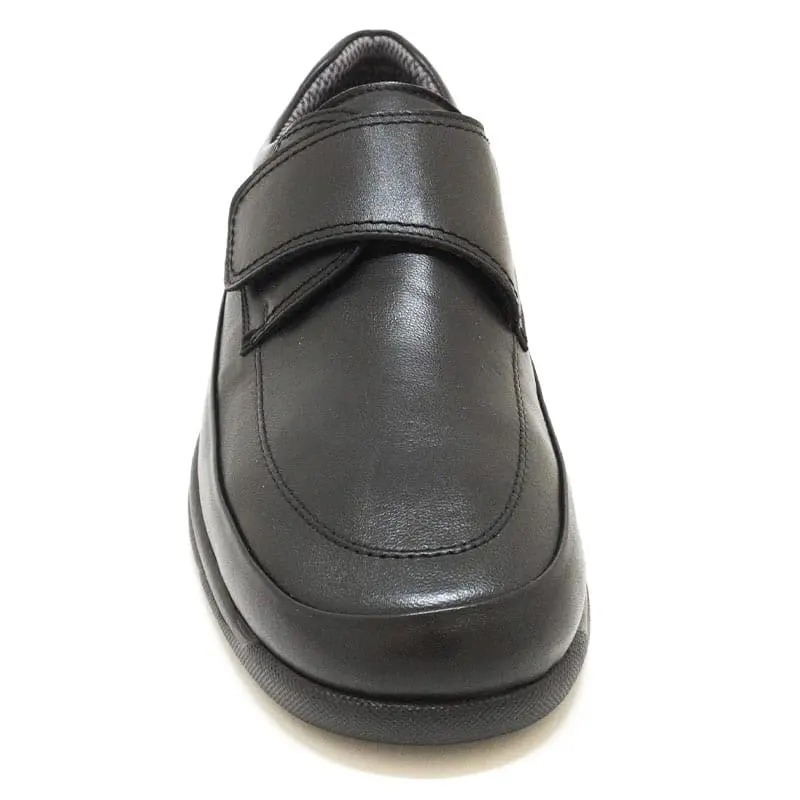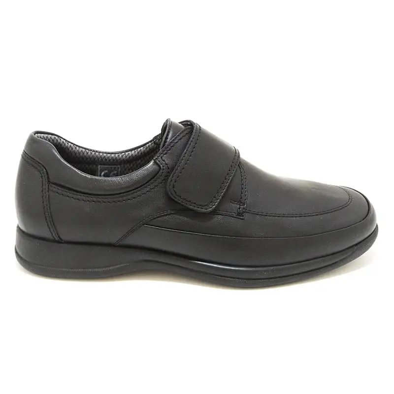 Cette chaussure pied large pour homme est disponible en couleur noir et de la pointure 40 Ă 45.