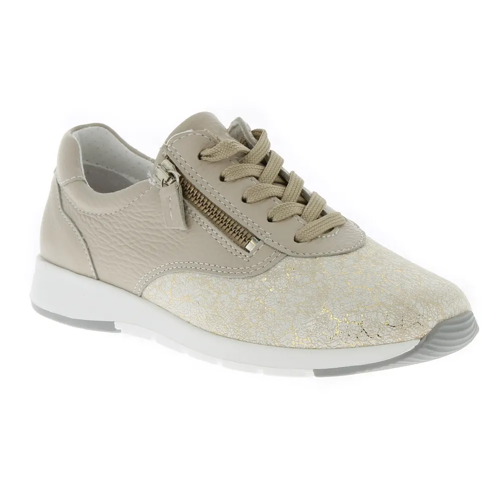 La chaussure Vicky en couleur crème est une chaussure femme spécialement fabriquée pour les femmes souffrant de pieds sensibles et d’orteils douloureux. L’avant de la chaussure est extensible et très doux. La fermeture éclair latérale permet un chaussage facile même pour les pieds peu mobiles.