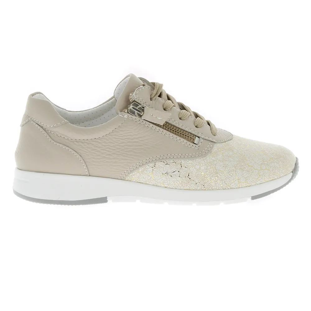 Cette chaussure confort pour femme est disponible en couleur crème et de la pointure 36 à 41.