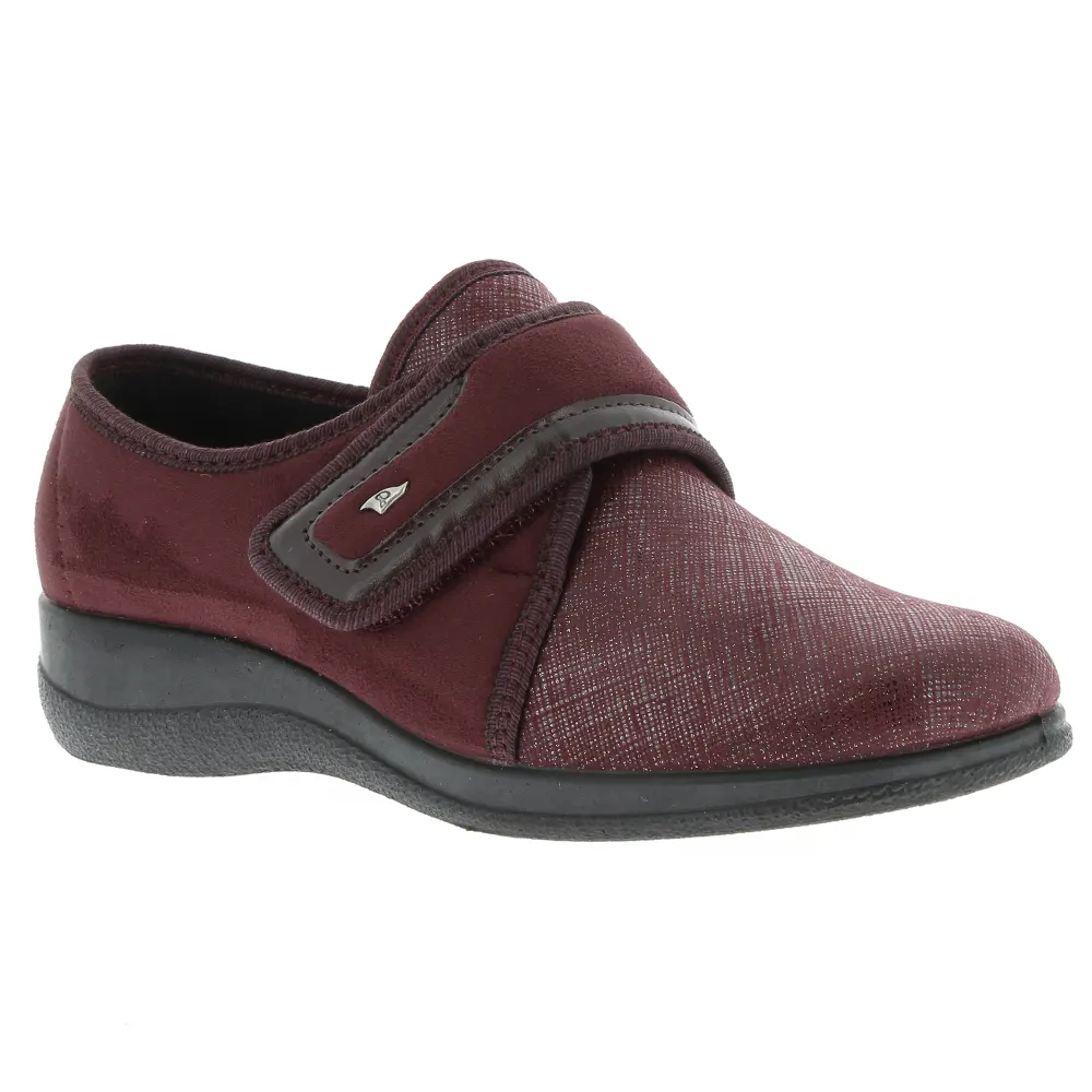 La chaussure Fauria en couleur Bordeaux est une chaussure orthopédique d’intérieur spécialement adaptée pour les femmes qui ont des orteils déformés comme un hallux valgus. Avec sa tige extensible sur tout l’avant-pied, la chaussure prendra la forme des déformations sans douleurs. Sa fabrication en textile synthétique évacue bien la chaleur et permet d’avoir une chaussure souple et légère.