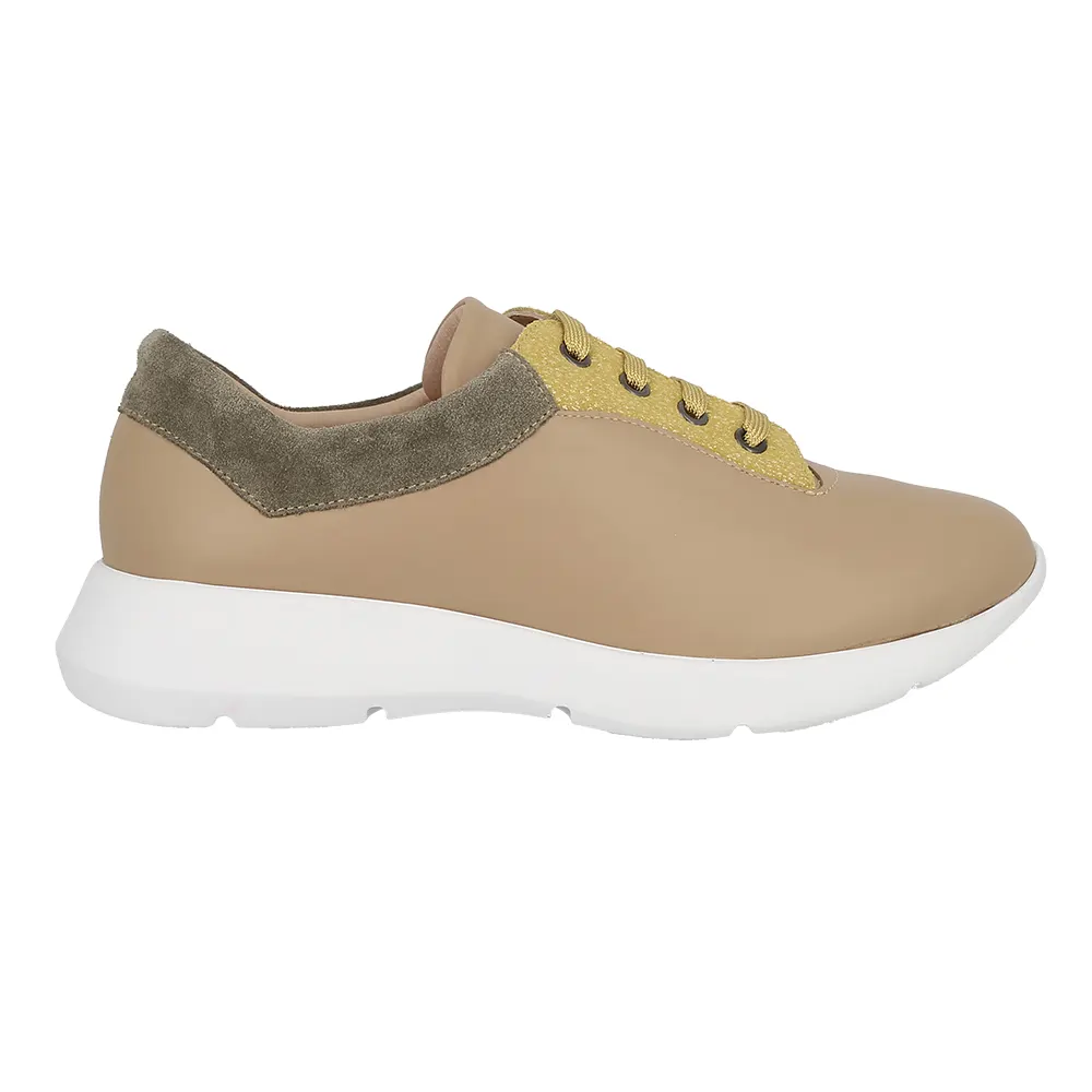 Cette chaussure confort pour femme est disponible en couleur moutarde et de la pointure 36 à 42.
