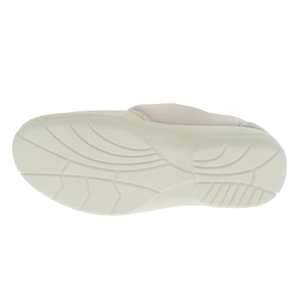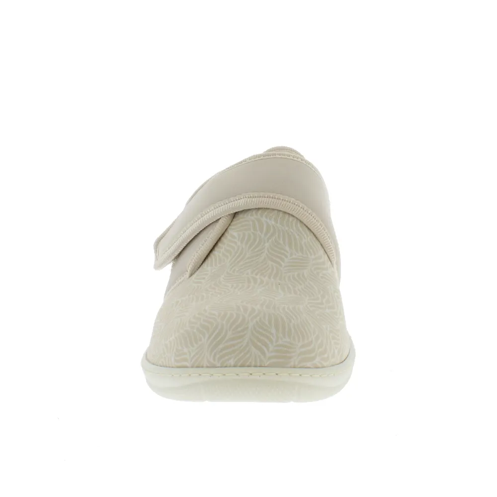 Cette chaussure orthopédique pour femme est disponible en couleur sable et de la pointure 36 à 42.
