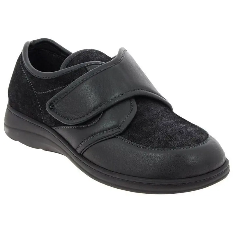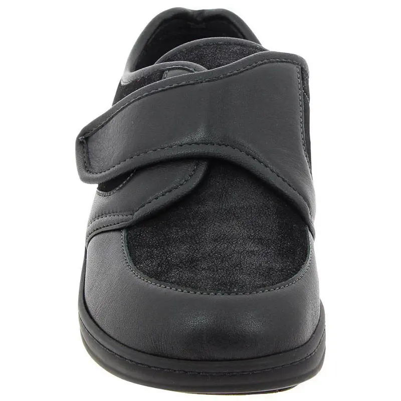 Cette chaussure de détente en cuir et textile est prévue pour un double usage : intérieur ou extérieur. Elle dispose d’un tour de cheville et d’un avant-pied très extensibles, qui offrent la souplesse nécessaire en cas d’œdème ou d’orteils en griffe. Sa semelle amovible peut-être remplacée par une semelle sur-mesure.