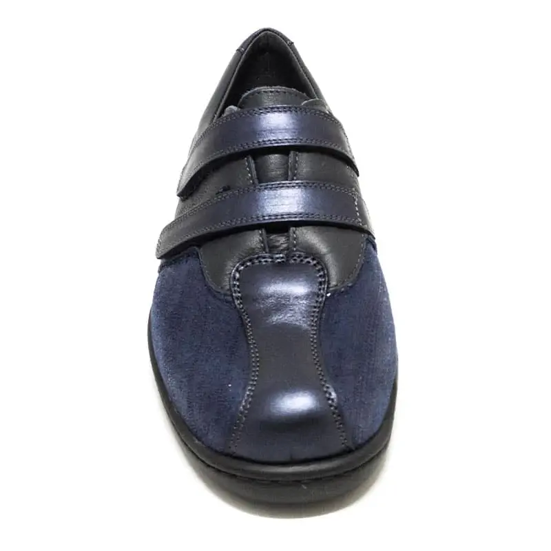 Cette chaussure hallux valgus pour femme est disponible en couleur bleu marine et de la pointure 35 à 42.