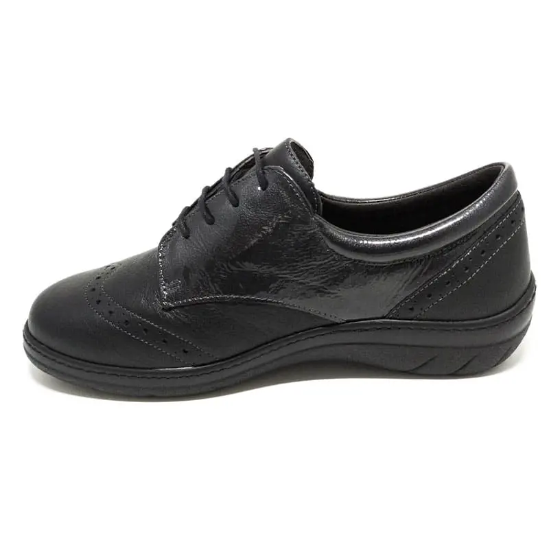 Cette chaussure pour diabétique pour femme est disponible en couleur noir et de la pointure 35 à 42.