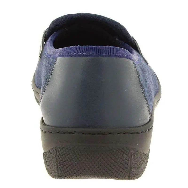 Cette chaussure confort pour femme est disponible en couleur bleu marine et de la pointure 36 à 42.