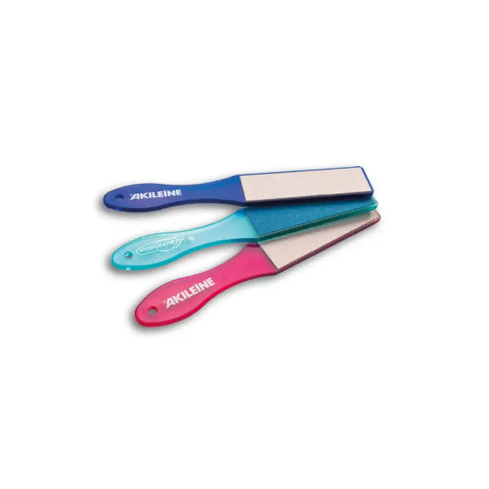 La Podorape® Akileïne® permet une élimination rapide des callosités et rugosités importantes. Sa double face à granulométrie fine et moyenne assure une élimination sévère des callosités pour l’une, et un lissage doux pour l’autre.