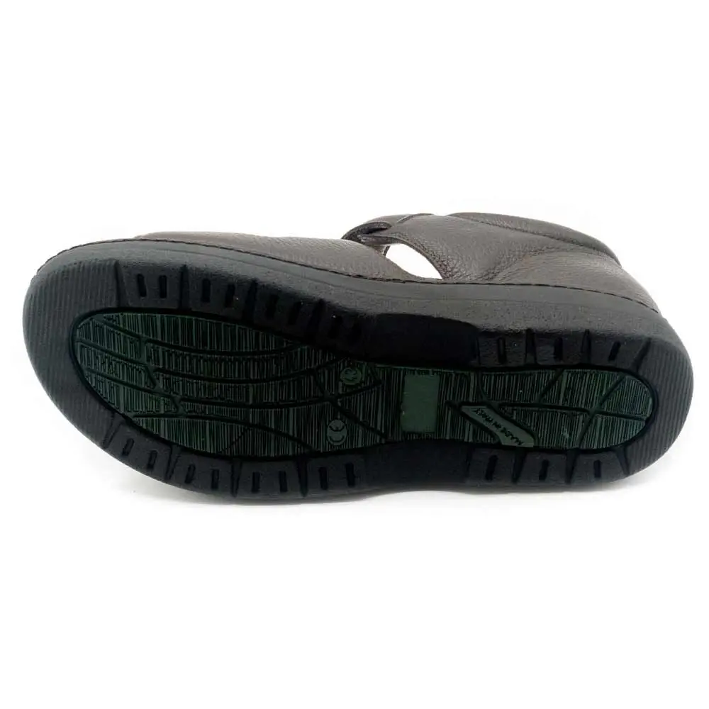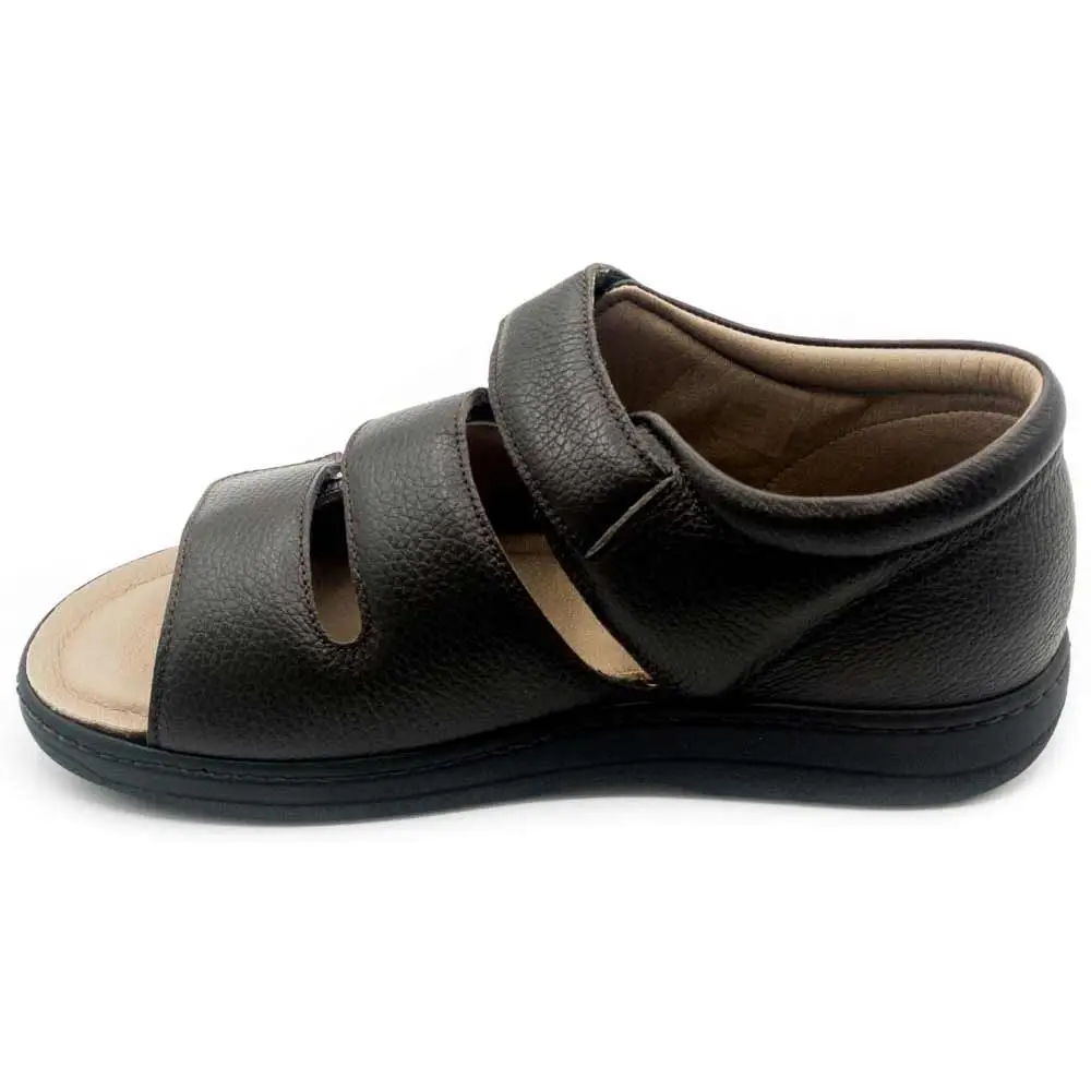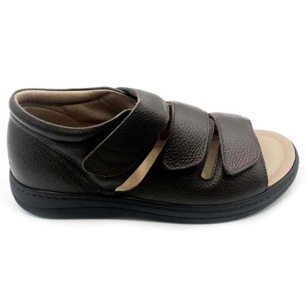 Cette sandale orthopédique pour homme est disponible en couleur marron et de la pointure 39 à 46.
