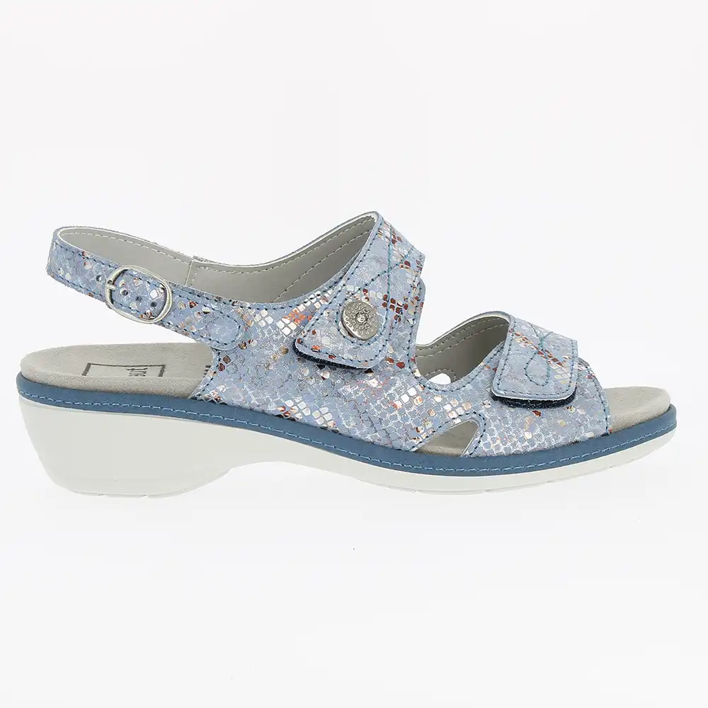 Cette sandale orthopédique pour femme est disponible en couleur bleu et de la pointure 36 à 41.