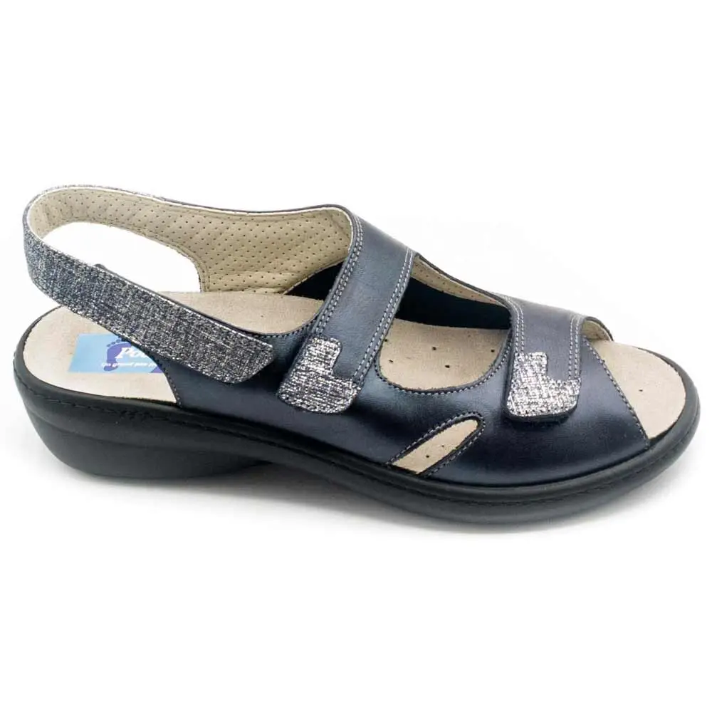 Cette sandale orthopédique pour femme est disponible en couleur marine et de la pointure 35 à 42.