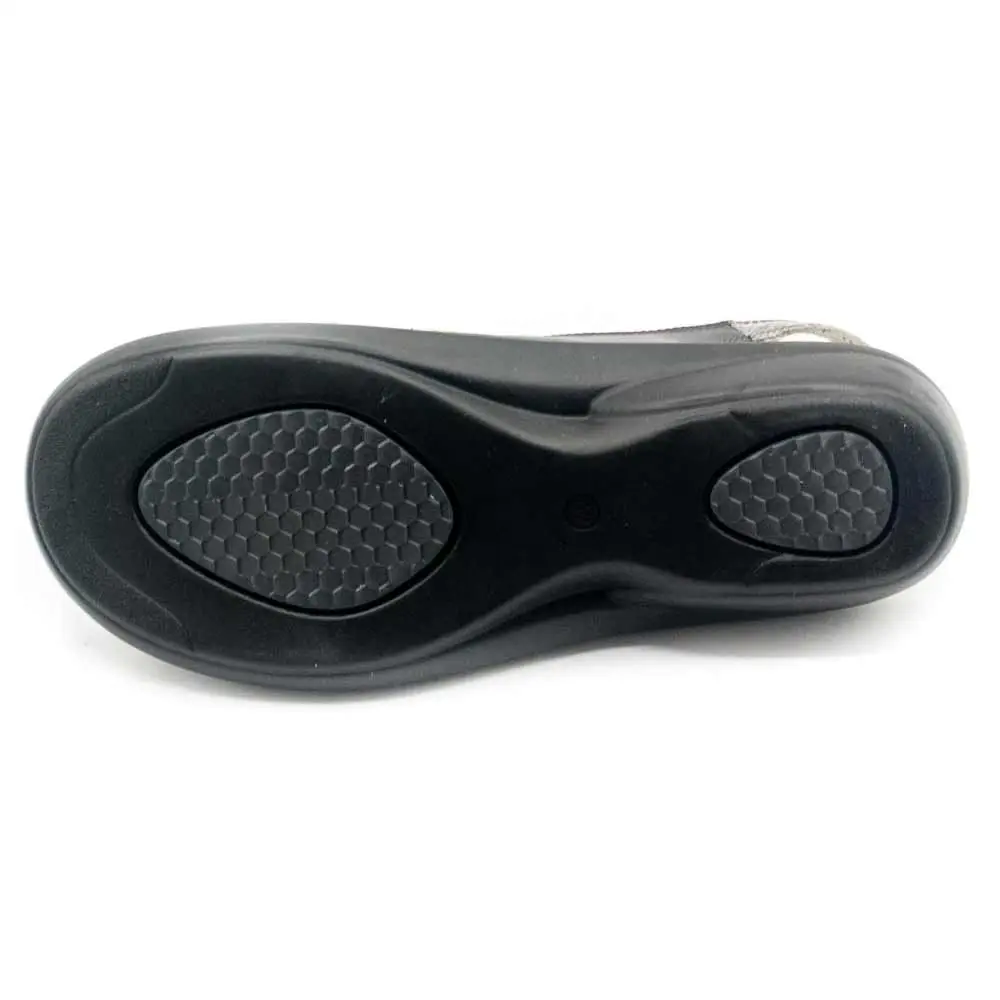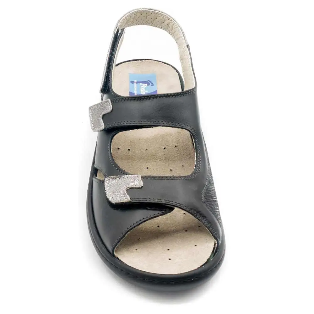 Cette sandale en cuir très féminine maintient parfaitement le pied avec ses 3 points de réglage. Le talon de 3 cm de haut permet par ailleurs une grande stabilité. Disposant d’une large zone extensible à l’intérieur du pied, elle convient aux personnes atteintes d’hallux valgus. La semelle intérieure amovible peut facilement être remplacée par une semelle orthopédique sur mesure. La sandale peut s’adapter aux personnes souffrant de fascite plantaire.