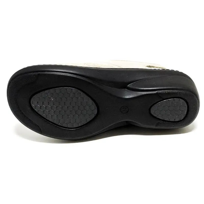 Cette sandale confortable pour femme est disponible en couleur beige et de la pointure 35 à 42.