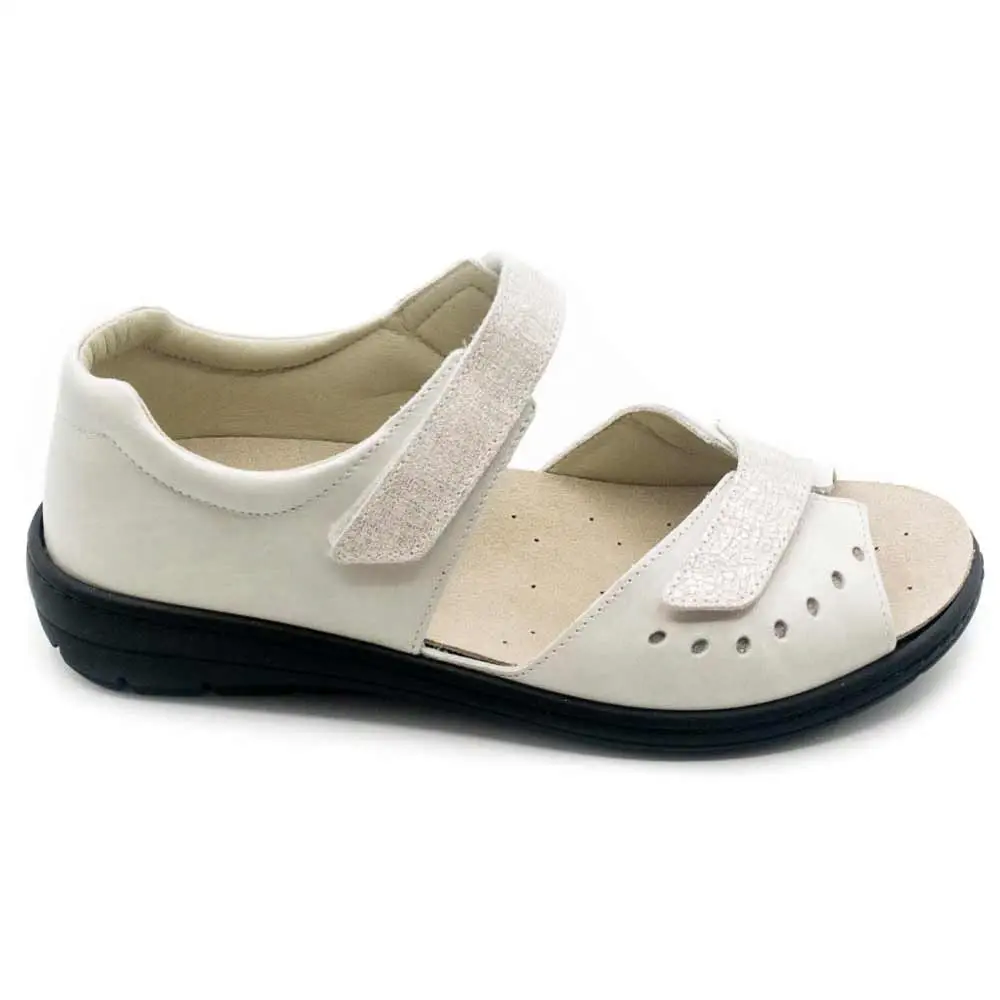 Cette sandale orthopédique pour femme est disponible en couleur écru et de la pointure 35 à 42.